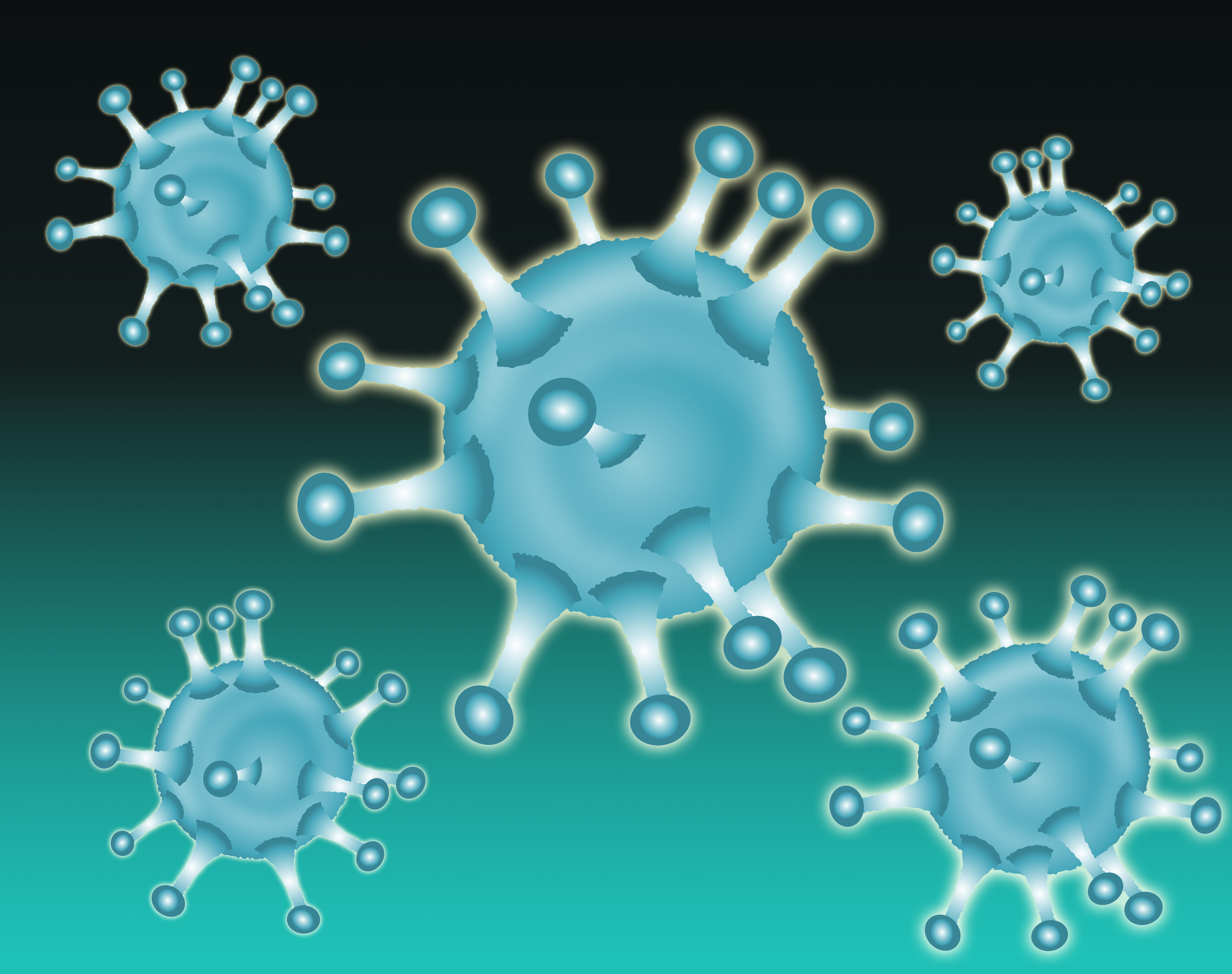 Vorige afbeelding Volgende afbeelding Molecule Virus Graduated Illustration of a blue molecules virus graduated set on isolated dark background done in retro style.